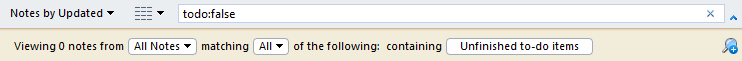 The checkbox we added in the end will be used in a Saved Search to quickly find a list of things that are still not returned. Just type ‘todo:false’ in the search field and we are all set! You can even save this search for later so that you do not have to type it again!